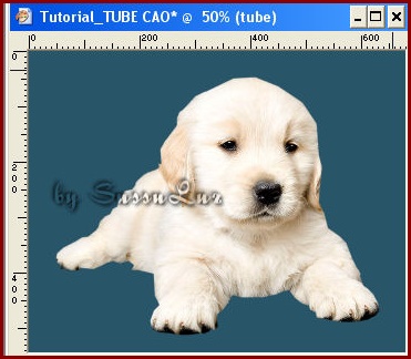 03. Clique na layer do tube, após clique na ferramenta freehand selection tool (point to point - replace), circundando toda a volta do cão.