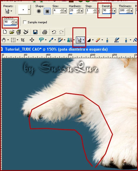 Abrimos a layer tube auxilio e configuramos o smudge conforme o comprimento dos pelos do cão. Refazemos.