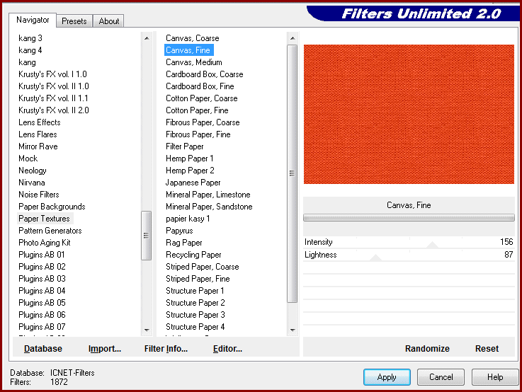 02- Aplique nessa layer, plugin paper textures > canvas fine nas configurações do print: