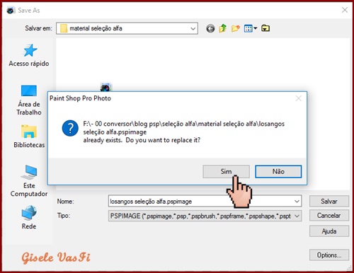 9- Salve novamente o arquivo .psp porque as seleções estão salvas apenas no arquivo aberto no programa. Elas ainda não estão salvas na pasta.
